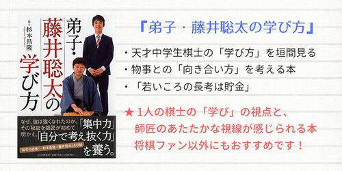 杉本昌隆著『弟子・藤井聡太の学び方』の感想文・レビュー。1人の棋士を通して、将棋の魅力と「学び方」を知る。師匠目線で見る藤井少年の姿は新鮮で、あたたかな師弟関係が垣間見える素敵な1冊。