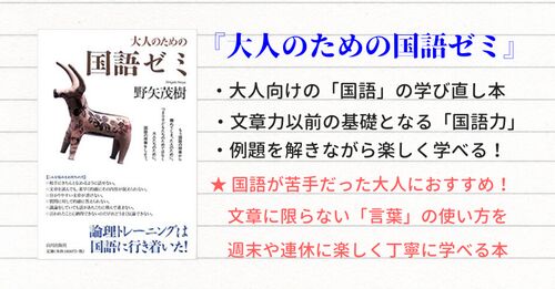 野矢茂樹著『大人のための国語ゼミ』の感想文・レビュー。社会人が「国語」を学び直すのにぴったりの1冊。文章力や語彙力ではなく、すべての基礎となる「言葉の使い方」を身につけられる本です。