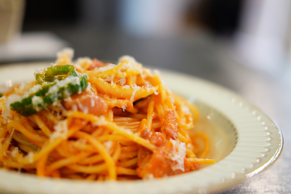 どうもおひさしぶりです、と声をかけるような気持ちでフォークに絡めると、いえいえそんな、と言わんばかりに絡みついてくる。なんて愛おしいんだろう。麺の上にうっすらとあらかじめかけられていたチーズが、にっこりと笑ったような気がした。何を言っているんだ、おまえは。